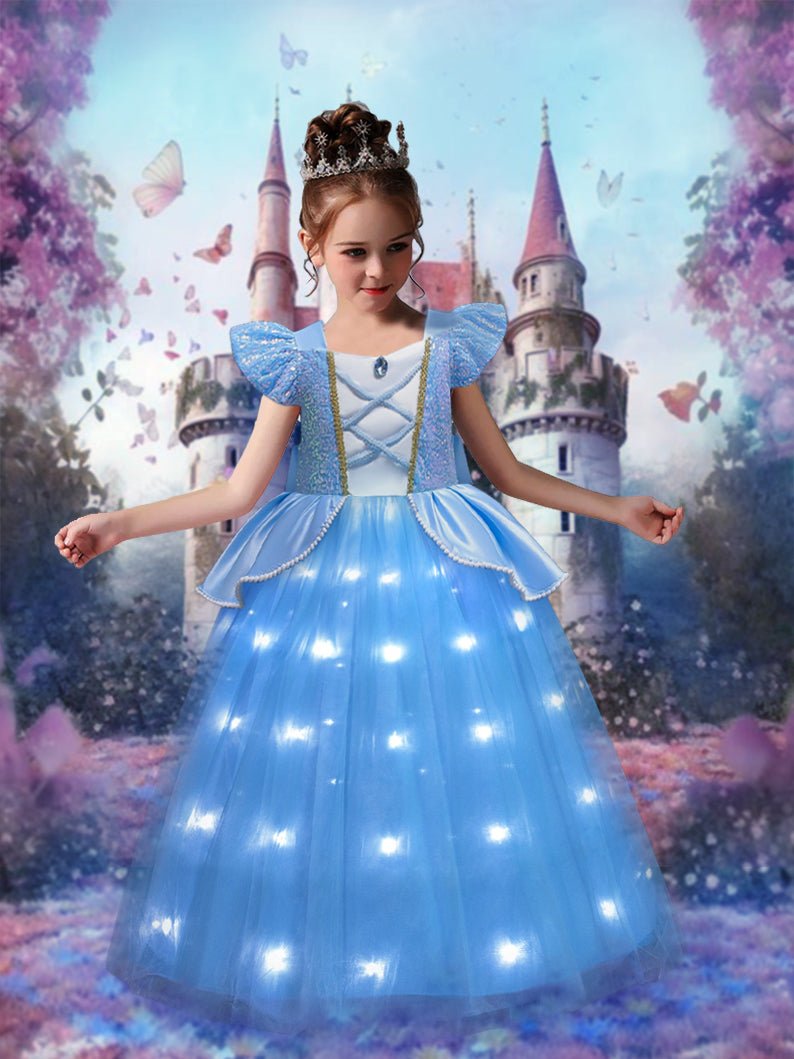 Light up Cinderella Puff Sleeve Princess Dresses